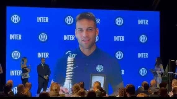 劳塔罗表示:“感谢大家,我很遗憾今晚无法和你们在一起,因为我还在国家队工作。我为获得这个奖项感到骄傲,我想要感谢所有投票给我的球迷们,我知道有很多球迷投票。我很高兴连续第二年获得这个奖。我要拥抱大家,祝你们经历一个伟大的夜晚,祝你们好运。拥抱大家,加油国米。”